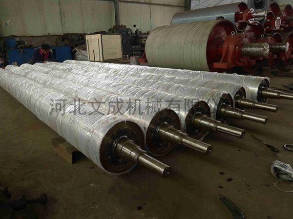 滚筒的生产主要有辊体初车、初校静平衡、轴头过盈装配焊接、精车和精校动平衡等工序组成。若对行为公差如圆度、圆柱度和直线度等要求在0.2mm以下的,则在精车后需要上外圆磨床或轧辊磨床磨削加工。对表面硬度有要求的,则需要增加热处理工序。滚筒成型后,出于防锈防腐、耐磨和支撑的需要,还需要表面处理或包覆如喷漆、镀锌、TEFLON喷涂、包橡胶、镀铬、陶瓷喷涂和氧化等工序。